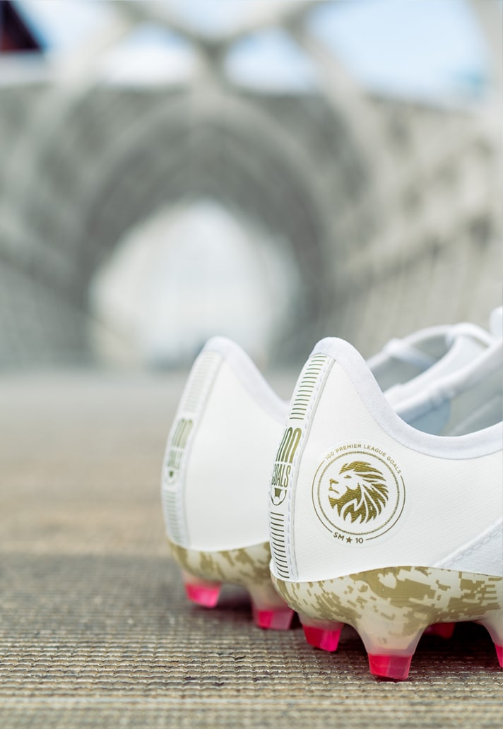 이번에 출시한 사디오 마네 '센츄리온' 축구화는 발뒤꿈치에 사디오 마네를 상징하는 로고와 ‘100GOALS’라는 문구가 새겨져 있습니다.
