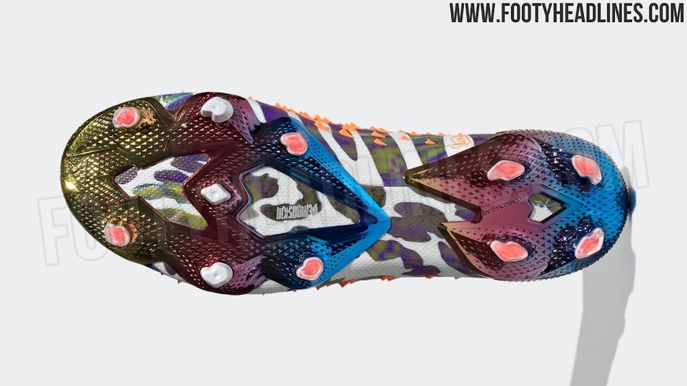 축구화에는 마치 표범의 무늬 같은 패턴이 컬러풀하게 새겨져 있습니다. 이것이 어떤 것을 의미하는지는 아직 알려지지 않았습니다.