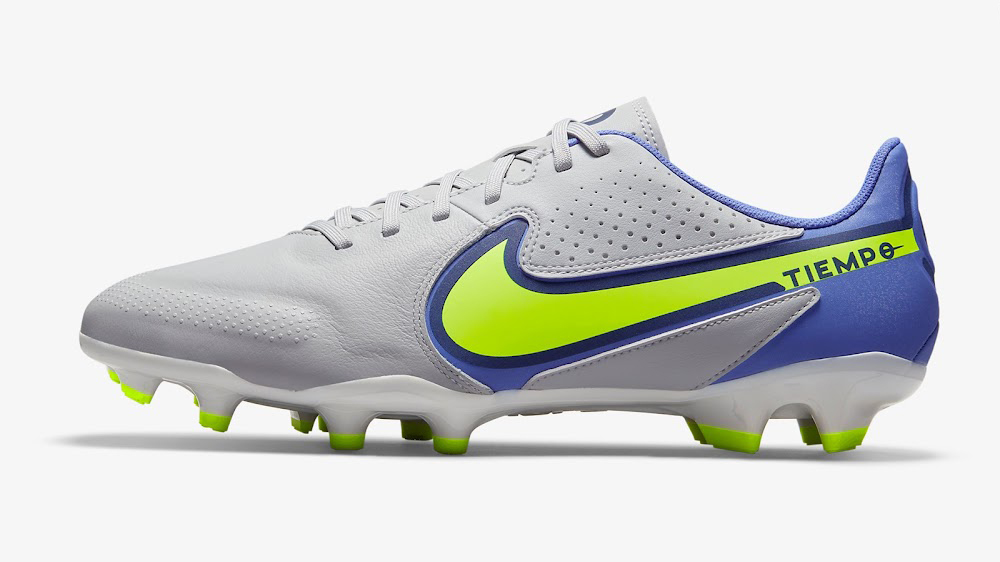 티엠포 레전드 9 리차지 팩의 공식 색상 조합은 ‘Blue / Black Hi-Vis Yellow’로써 뒤꿈치는 파란색으로 이루어져 있고, 스터드의 끝부분과 나이키 스우시가 형광색으로 색이 입혀져 있습니다.