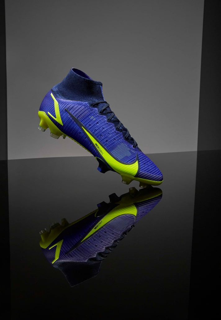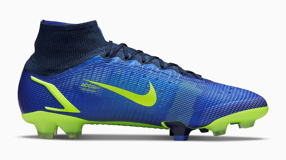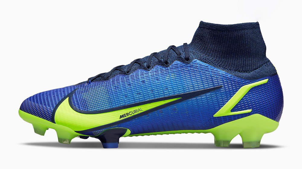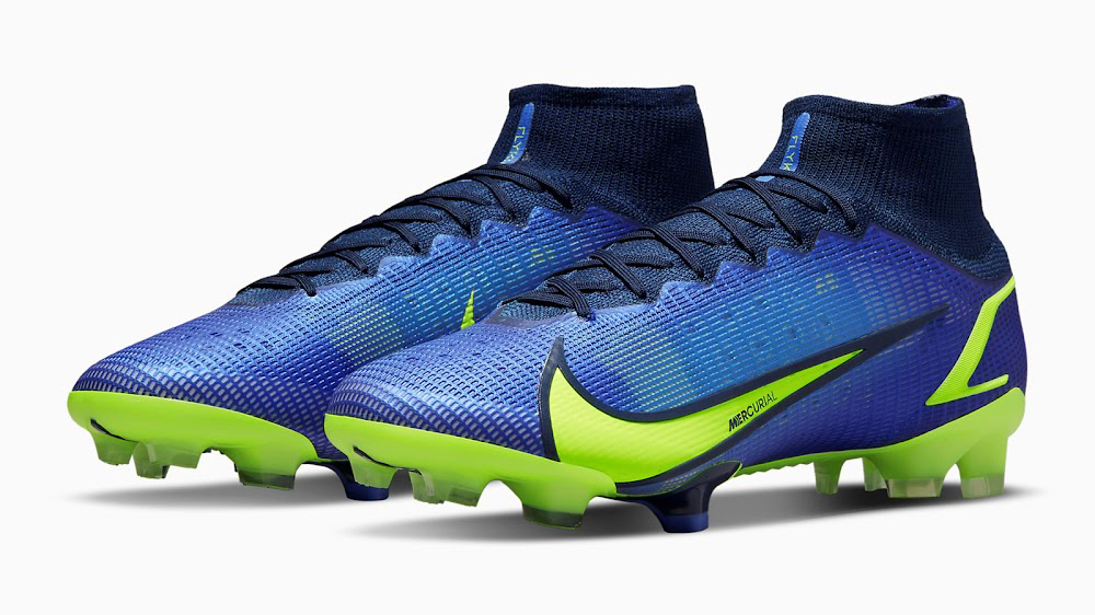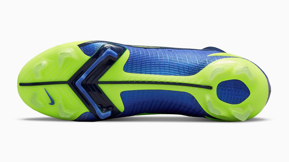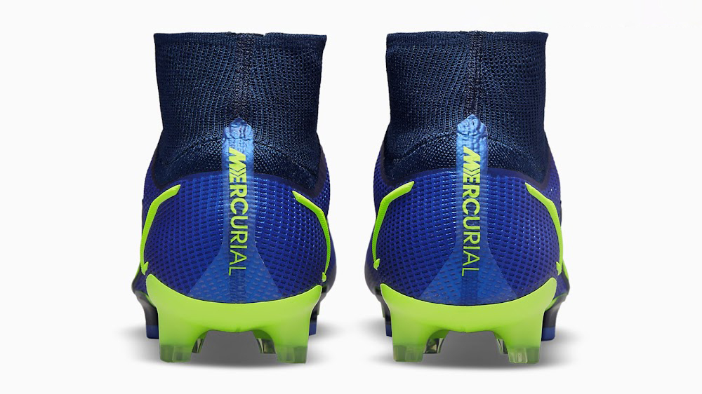 머큐리얼 슈퍼플라이 8 리차지 팩의 공식 색상 조합은 ‘Sapphire / Volt / Blue Void’로 깔끔한 외관을 지니고 있습니다. 텅 부분과 스우시 테두리에 더 어두운 색감의 로얄 블루 색상을 사용하였습니다. 색으로 스우시와 아웃솔 부분에 디테일을 더해 눈에 확 띄는 느낌을 받습니다.