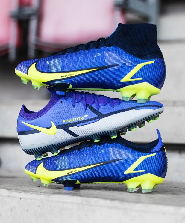 이번 ‘리차지 팩’은 나이키의 2021-2022시즌 모티베이션 팩에 이은 두 번째 메인 팩입니다. 파란색(‘Sapphire’,’Blue Void’)과 흰색 / 회색 및 ‘Volt’색상을 결합한 디자인이 특징입니다.