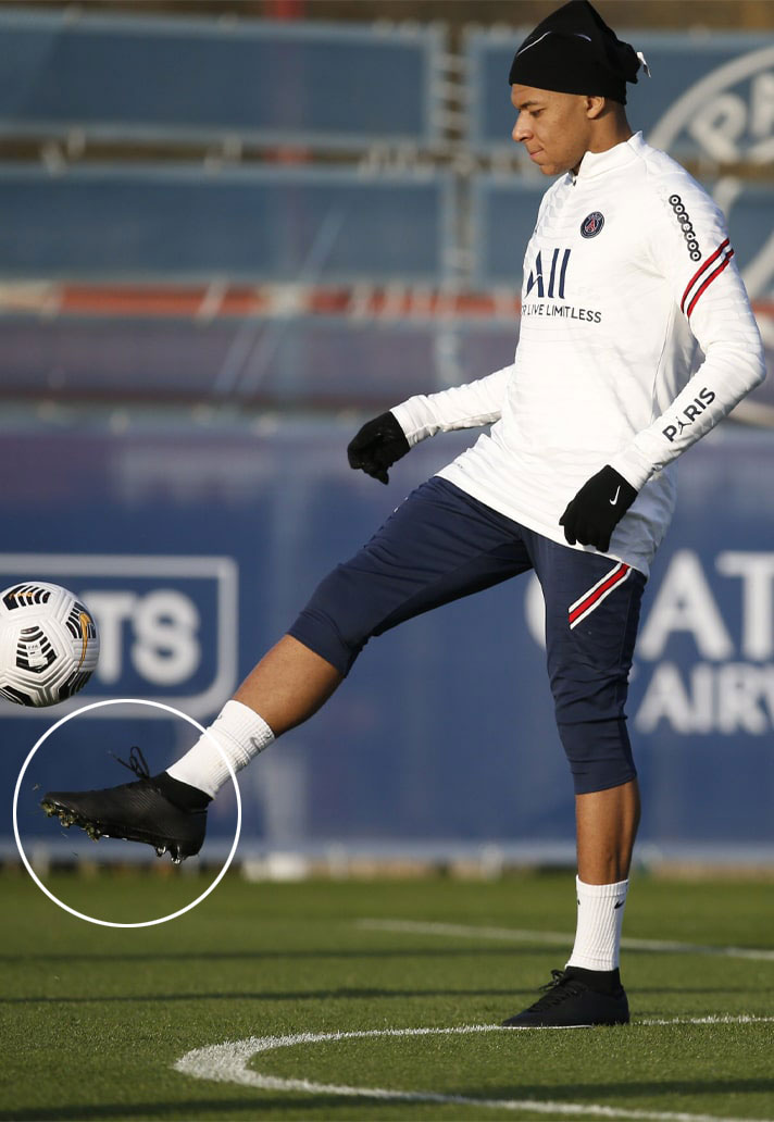 두 번째 선수는 PSG의 ‘킬리안 음바페(Kylian Mbappe)’입니다. 음바페 역시 훈련장에서 블랙아웃 축구화를 신었는데요.