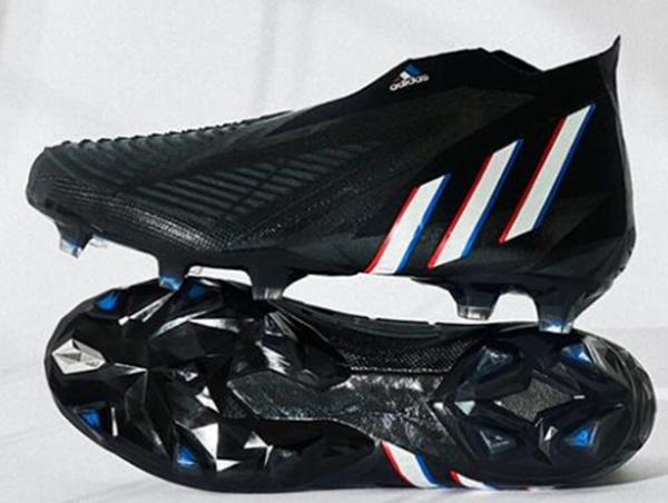 축구화는 전체적으로 블랙 컬러가 사용되었고, 삼선 로고 부분에는 프랑스 국기를 표현한 듯한 레드/화이트/블루 컬러가 사용됐습니다.