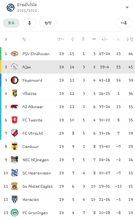 충격적인 이번시즌 아약스의 골 득실과 순위(feat.호날두).jpg
