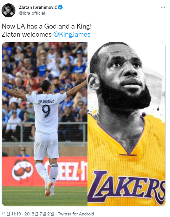 "이제 LA는 신과 왕 둘다 가졌다! 즐라탄이 환영한다 르브론!!"