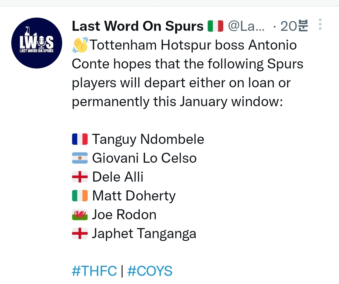 콘테 감독의 방출명단 리스트ㄷㄷㄷㄷ