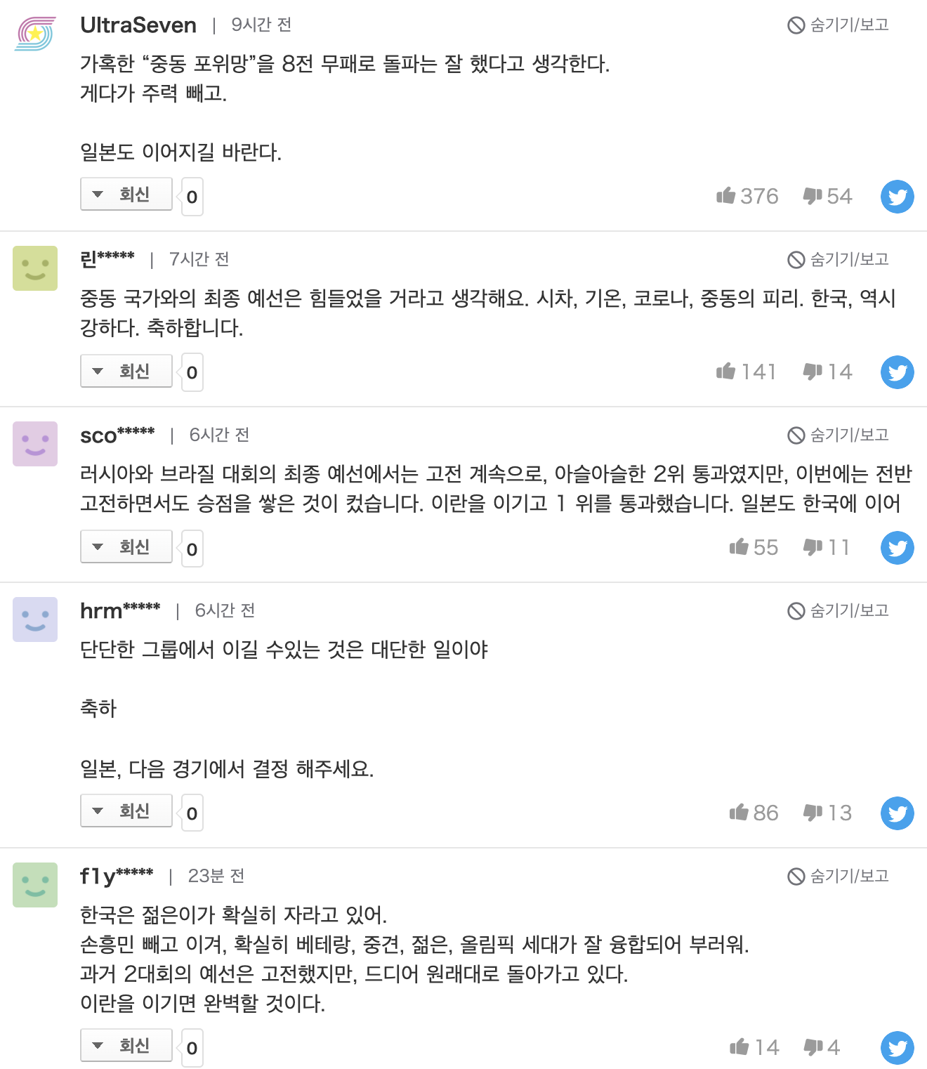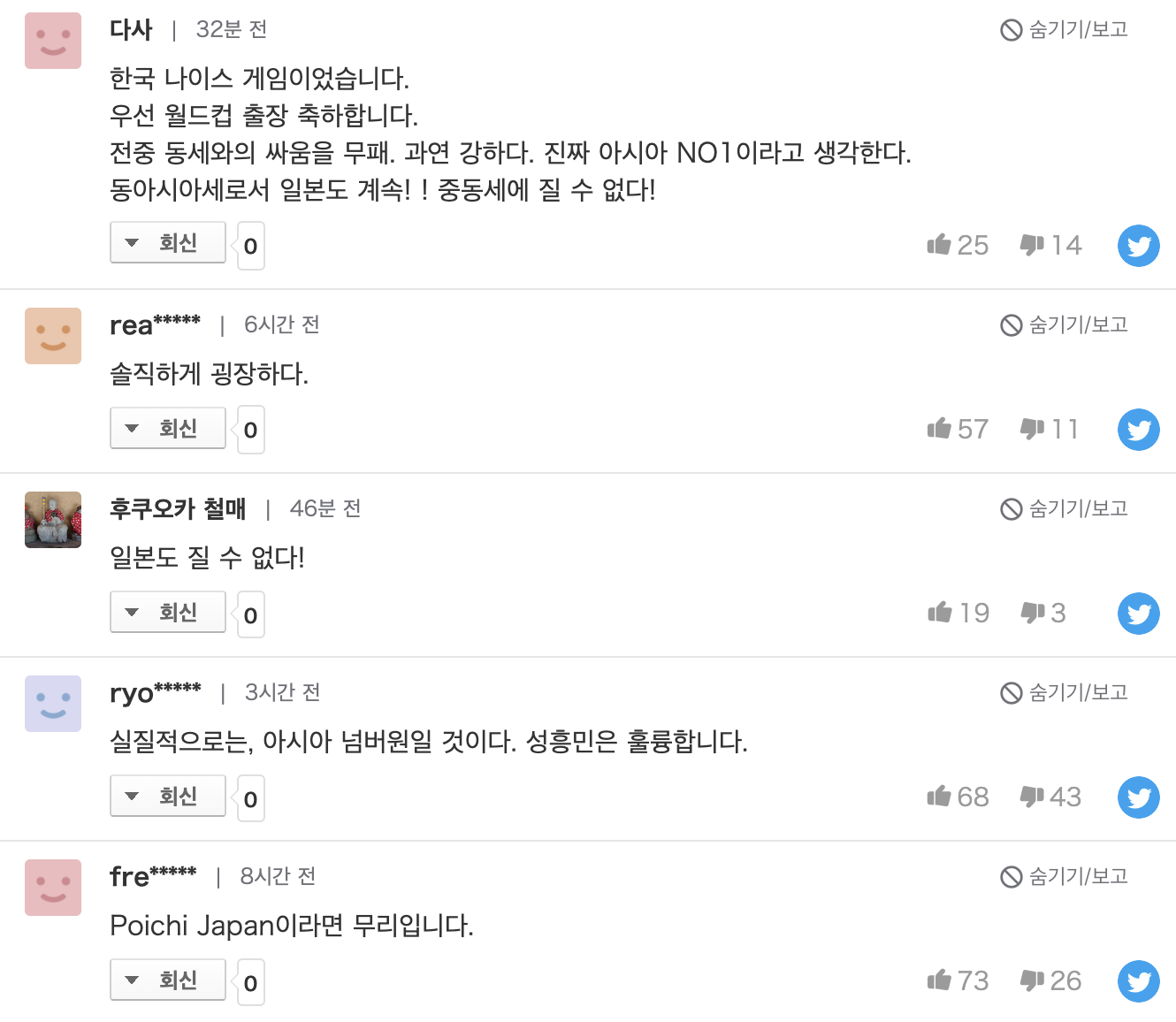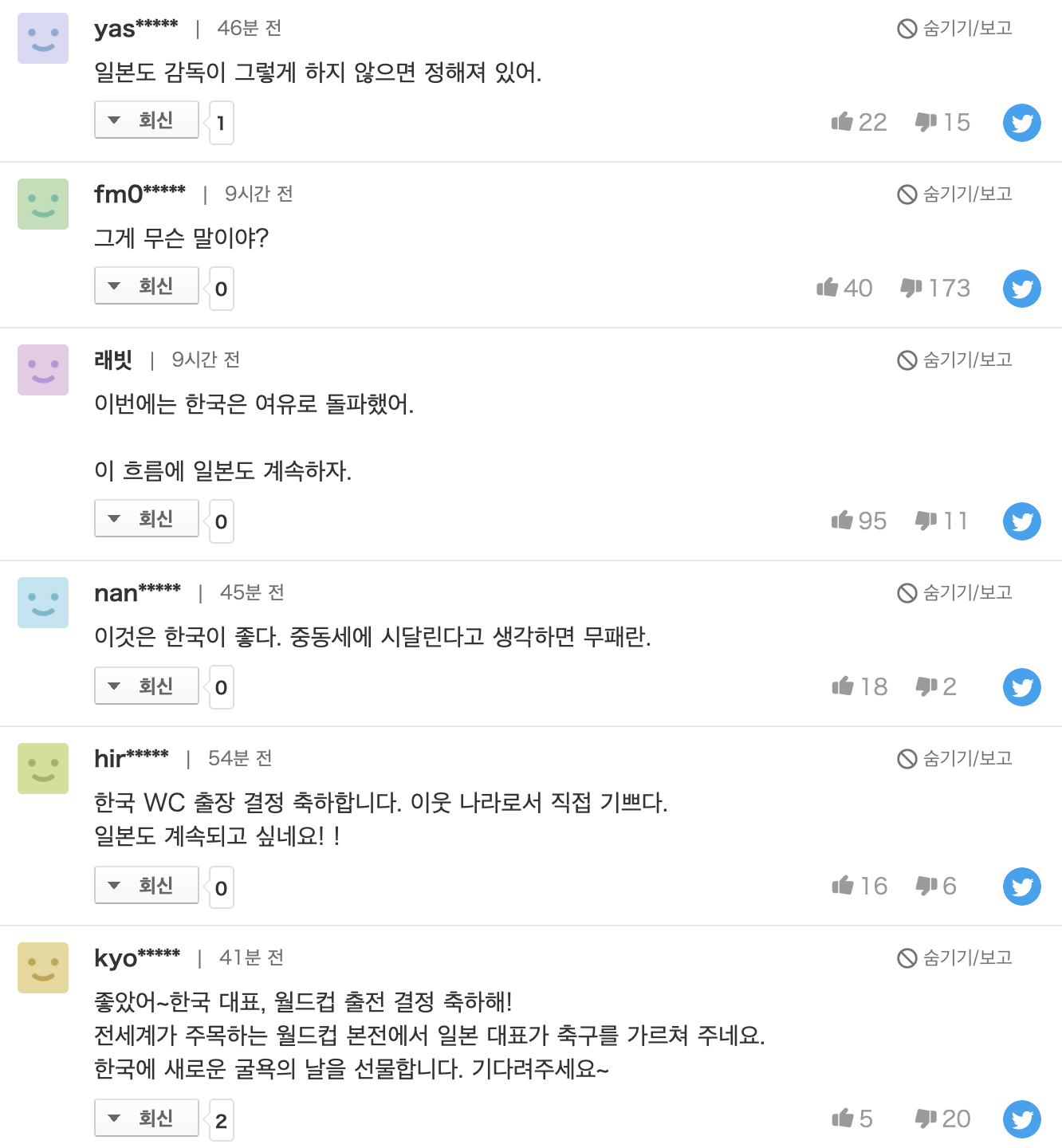 [한국의 월드컵 본선 진출을 본 '일본인들의 댓글 반응']