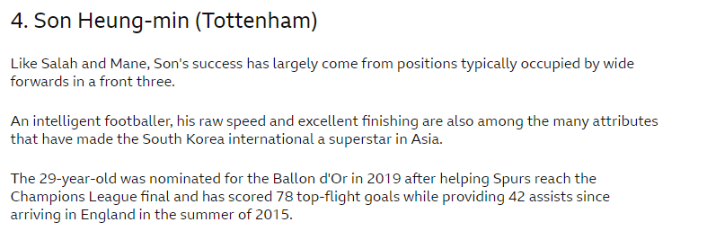 29세의 이 선수는 토트넘의 챔피언스리그 결승 진출을 도운 후 2019년 발롱도르 후보에 올랐고 2015년 여름 잉글랜드에 도착한 이후 78골을 기록했고 42도움을 제공했습니다.