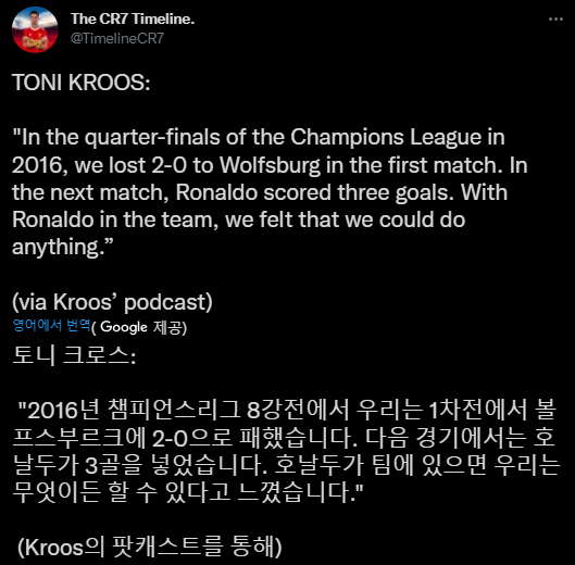 크로스는 호날두를 참 좋아하는 것 같음