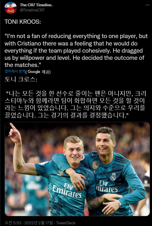 호날두와 함께한 순간을 추억한 '토니 크로스'