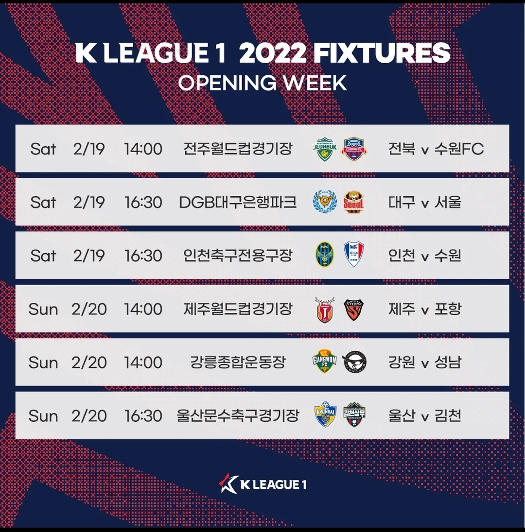백승호의 소속팀 전북 현대 모터스와 이승우의 소속팀 수원FC가 리그 개막전에서 만나네요.