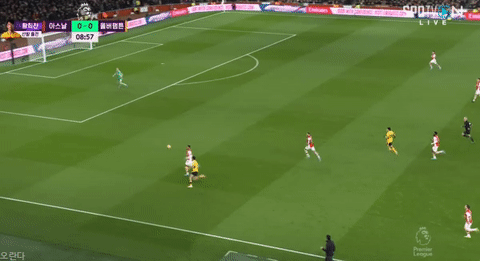 [아스날 상대로 9분만에 리그 5호골 기록하는 황희찬.gif]