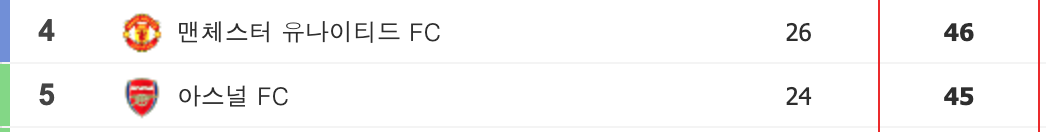심지어 아스날이 두경기 덜 치룸ㅋㅋㅋㅋㅋㅋㅋ