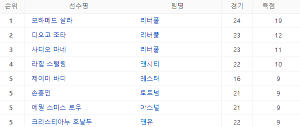 싹쓸이 당하고 있는 현재 프리미어리그 '득점&도움' 순위