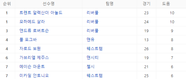 [싹쓸이 당하고 있는 현재 프리미어리그 '득점&도움' 순위]