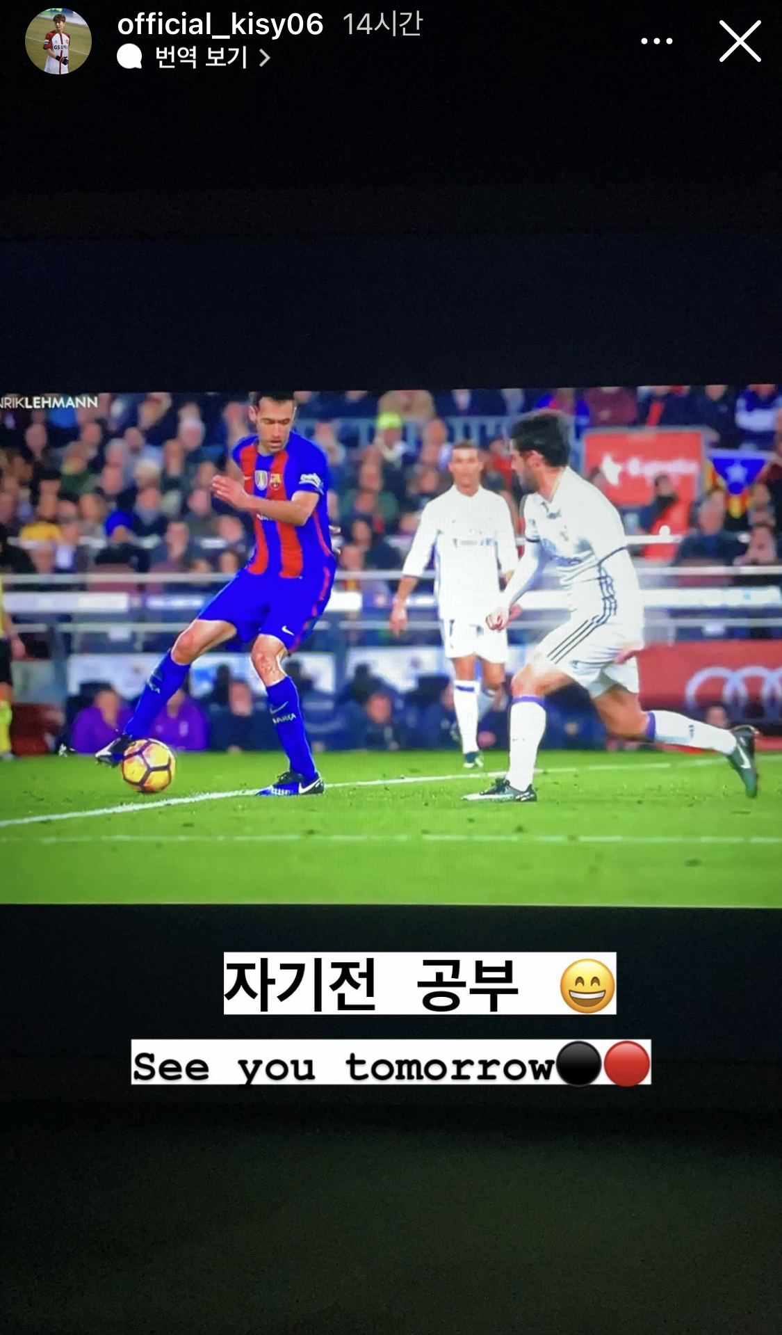 부스케츠 플레이 보며 공부하는 '한국 축구 선수'
