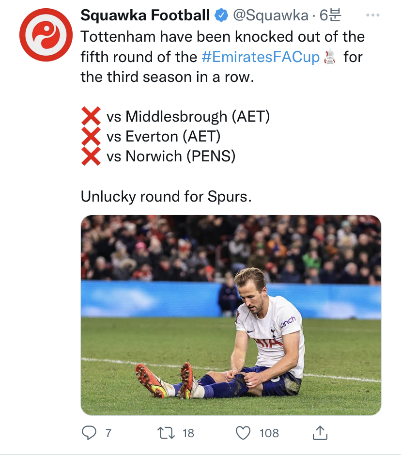[3시즌 연속 FA컵 5라운드에서 탈락한 토트넘]