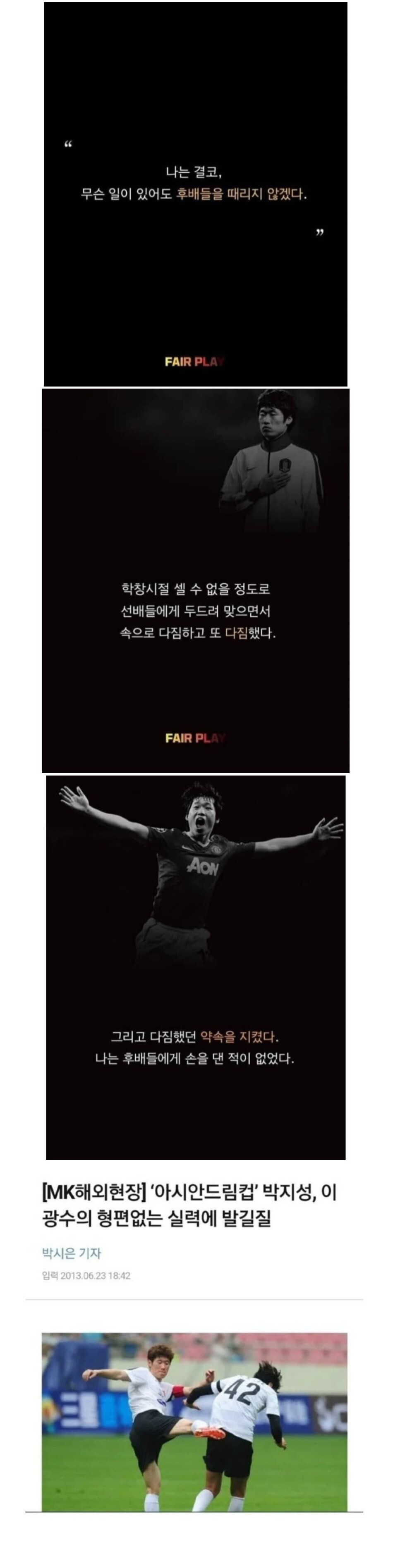 [한국 축구의 전설....박지성 "나는 절대 후배들을 때리지 않겠다"]