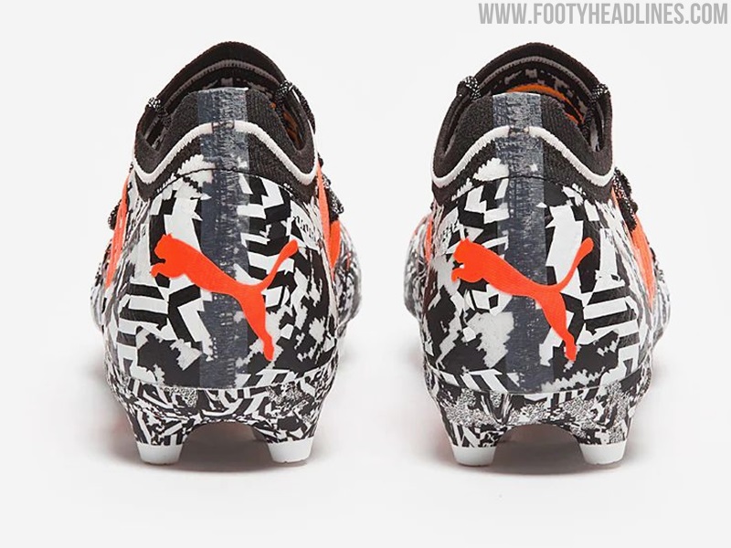 푸마 퓨처 Z 1.3 ‘티저 에디션’의 공식 색상 조합은 ‘White / Black / Neon Citrus / Ultra Orange’입니다. 이 축구화는 특징을 숨기기 위해서 카모플라주 어퍼를 사용했습니다. 또한 로고와 플라이와이어에 주황색으로 디테일을 살렸습니다.