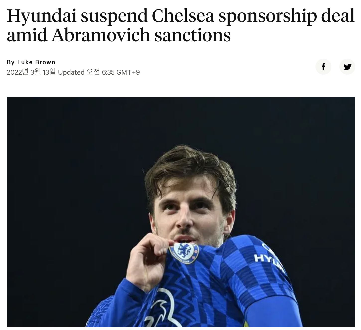 [현대, 영국 정부 제재로 인해 첼시 스폰 중단]