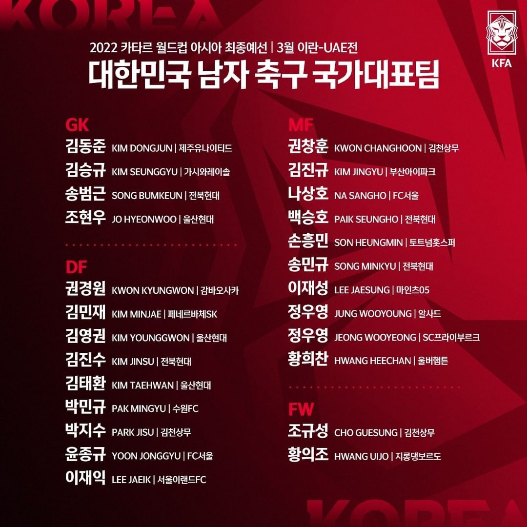 [[오피셜] 대표팀 월드컵 아시아 최종예선 명단 발표]