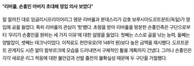 (이미 손흥민의 장점 3가지를 알고 있던 리버풀ㄷㄷ 만약 저 때 리버풀 갔으면 지금처럼 성공할 수 있었을까요?)