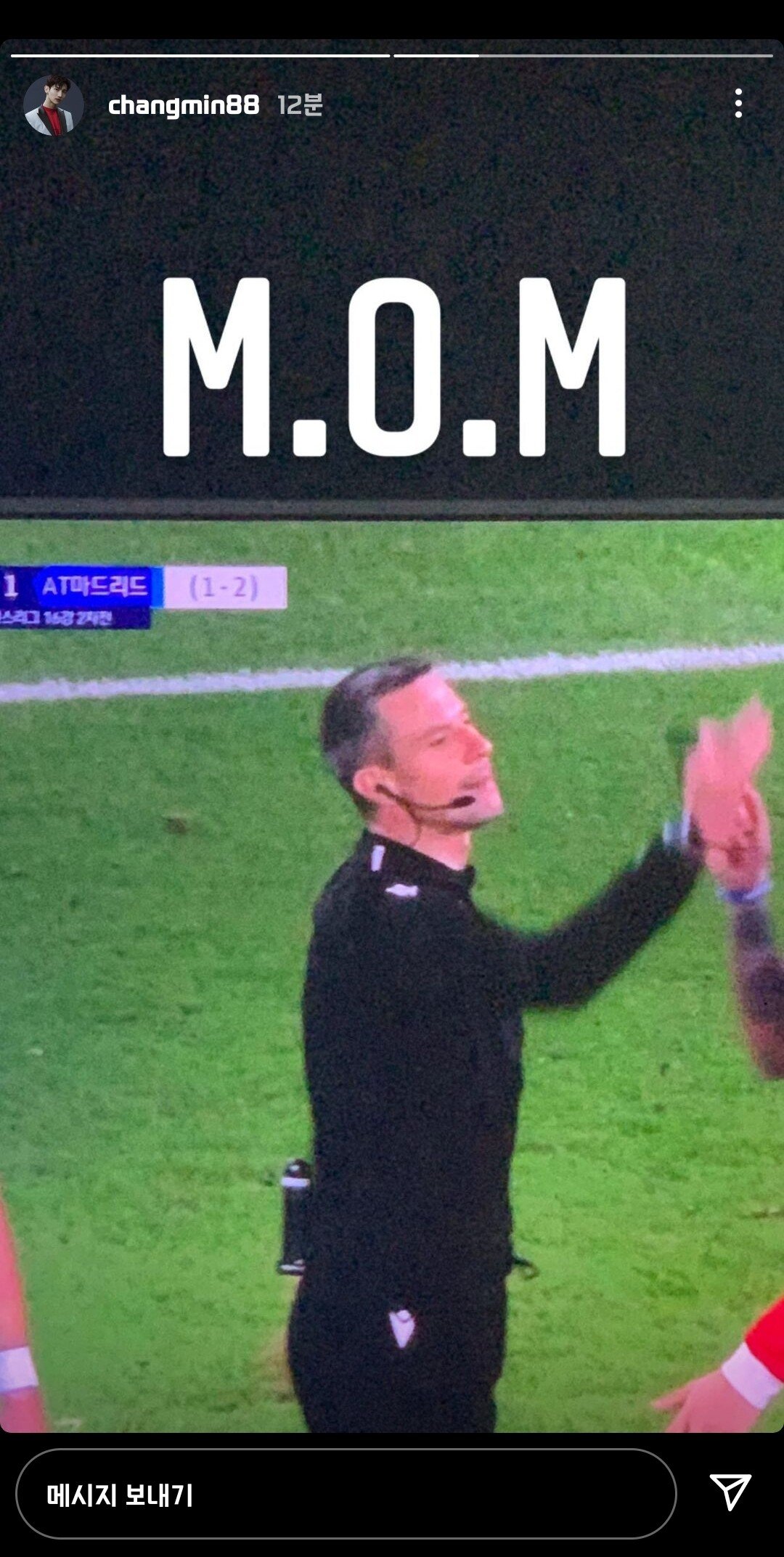 "오늘 경기의 MOM" 챔스 경기 후 최강창민의 인스타그램