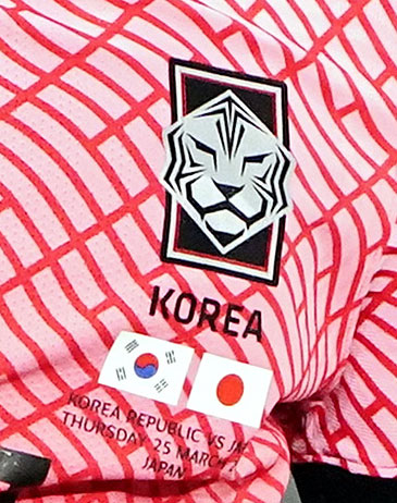 오래 전부터 국가대표간의 축구 경기를 치룰 땐 그 경기를 기념하기 위해 양팀의 국기와 경기 날짜를 유니폼에 부착하기도 합니다. '매치데이'라고 하죠. 물론 국기를 붙이는 게 필수는 아닙니다. 정치 문제를 떠나 스포츠 정신에서 두 국가의 만남을 기념하고 축하하는 것이죠.