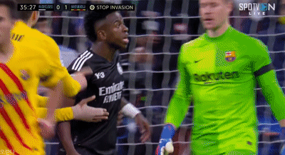 레알의 완벽한 역습으로 비니시우스의 1대1 찬스였지만 자세히 본 결과 혼자 드리블 하다가 넘어져 버림....