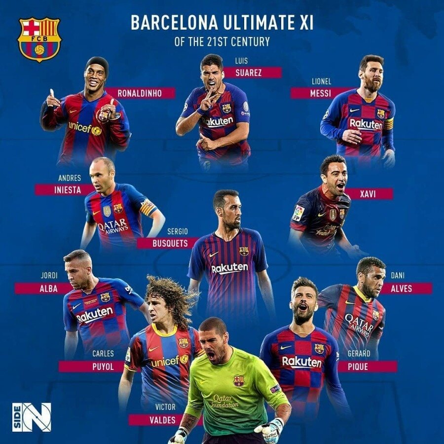 호나우지뉴 - 수아레즈 - 메시 / 이니에스타 - 부스케츠 - 사비 / 알바 - 푸욜 - 피케 - 알베스 / 발데스