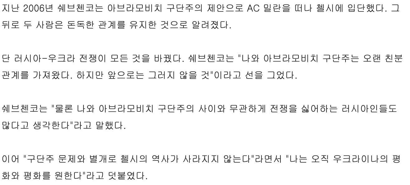 | "앞으로 만나지 않을것" 우크라이나 레전드의 절교선언 | |