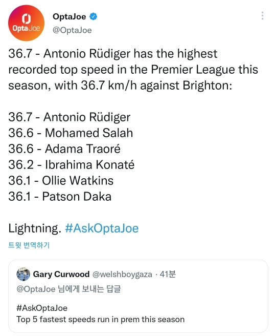 ['스피드 스타' 올시즌 프리미어리그에서 가장 빠른선수 TOP 6]
