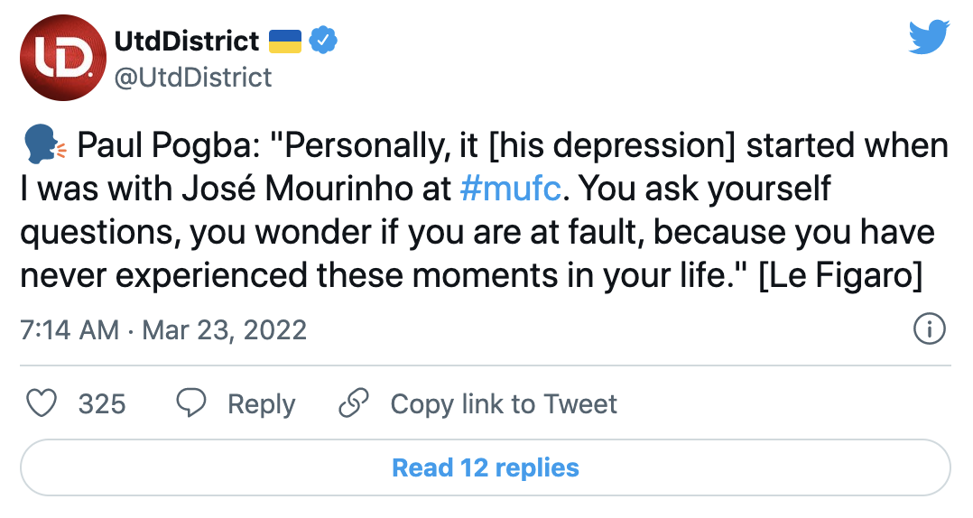 [포그바 "내 우울증은 무리뉴 감독 때 시작되었다."]