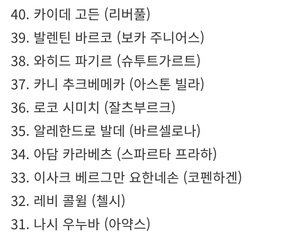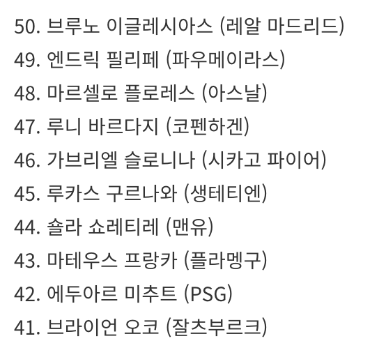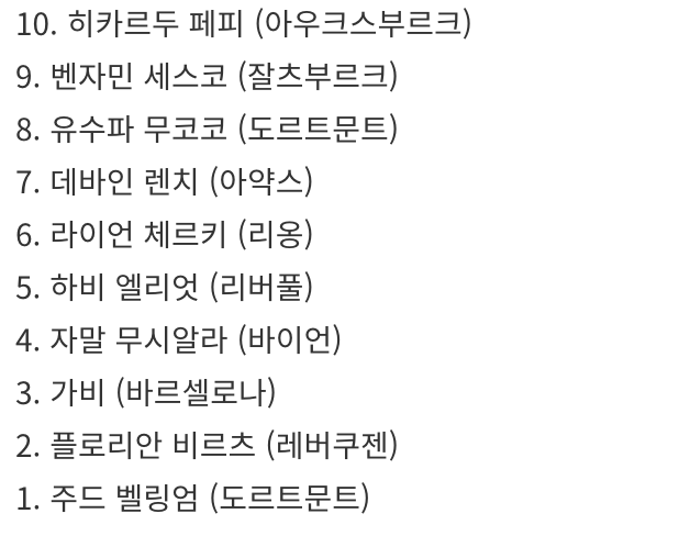 '넥스트 제네레이션' 03년생 이하 최고의 유망주 TOP 50