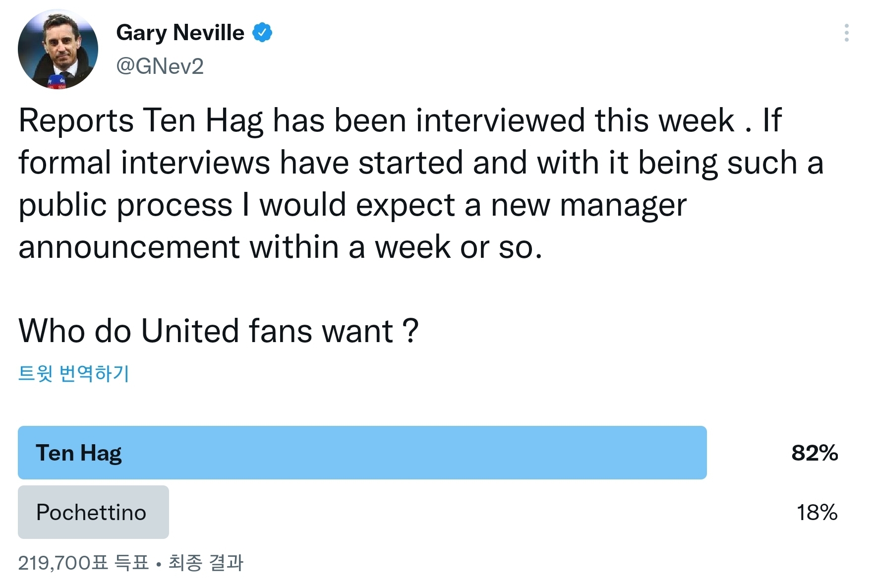 ["22만명 참여" 네빌이 올린 맨유의 차기 감독 투표]