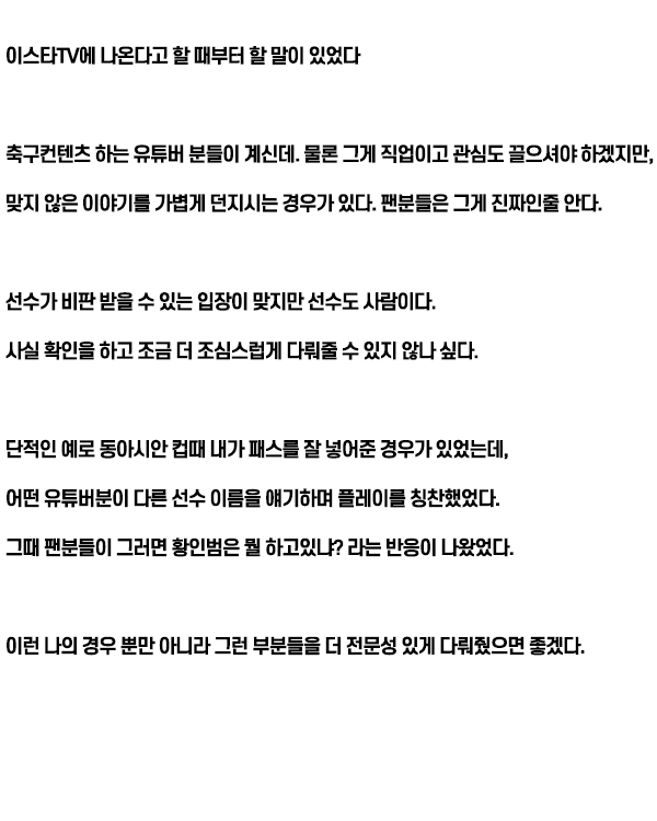 사실이 아닌 얘기를 확인도 제대로 안하고 해버리는 축구 유튜버들에게 해주는 말인듯.......