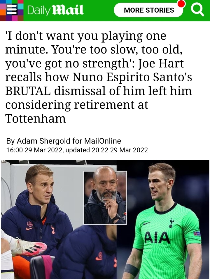 누누 : "니 몸은 더이상 축구를 할 수 있는 상태가 아니야. 난 니가 1분을 뛰는 것도 내키지 않고 넌 너무 나이가 들어서 공을 따라가지 못하고 몸에 힘도 없어."
