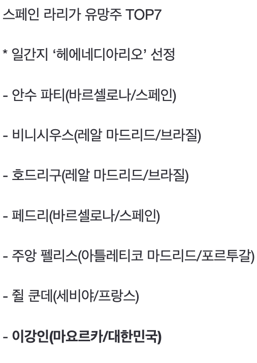 | '이강인 포함' 스페인 매체가 뽑은 라리가 유망주 top7 | |