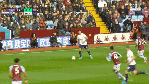 공이 날아오는 중인데 순식간에 고개 돌려 손흥민 위치 파악하고 머리로 패스ㄷㄷ 손흥민도 대단한 게 낌새 보고 바로 침투 시작함