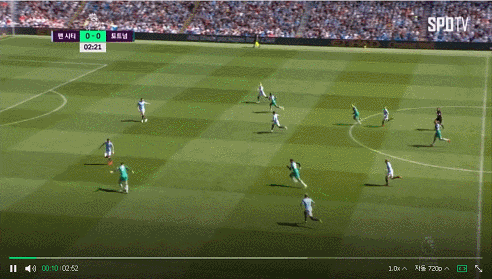 주발이 아닌 약발에 걸리면 과감한 슈팅을 하지 못하는 스털링.. 오른발 각을 만들려고 시도함