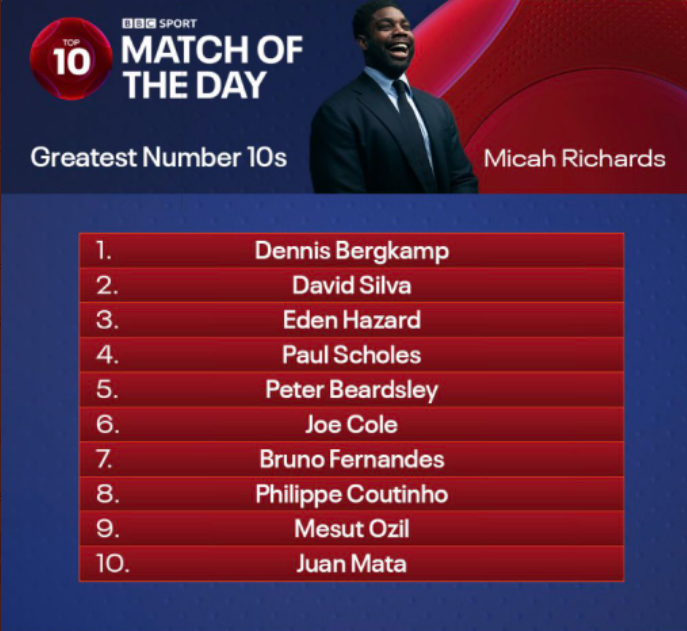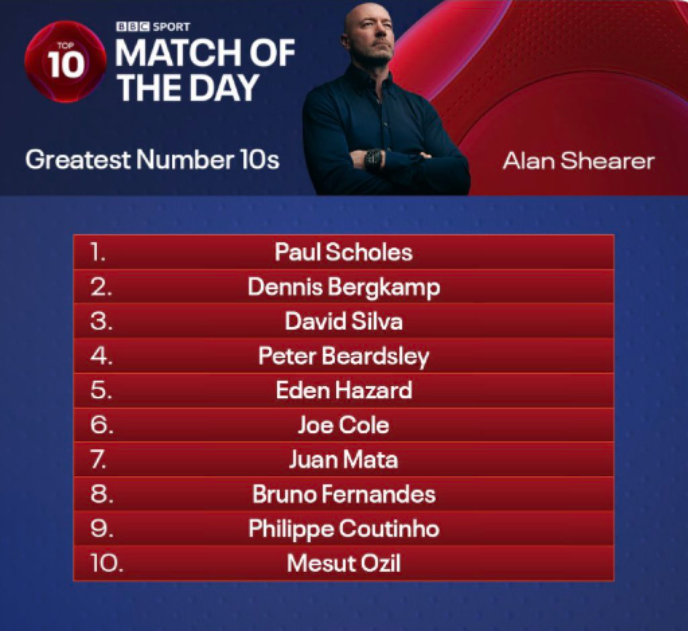 BBC 마이카 리차즈와 앨런 시어러 선정 PL 역대 최고의 10번롤 선수들