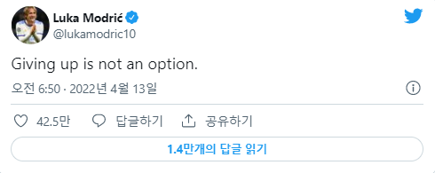 루카 모드리치 - " 포기하는건 옵션이 아니다. " ㄷㄷㄷㄷㄷ 진짜 발롱위너의 품격이다ㄷㄷㄷㄷㄷ