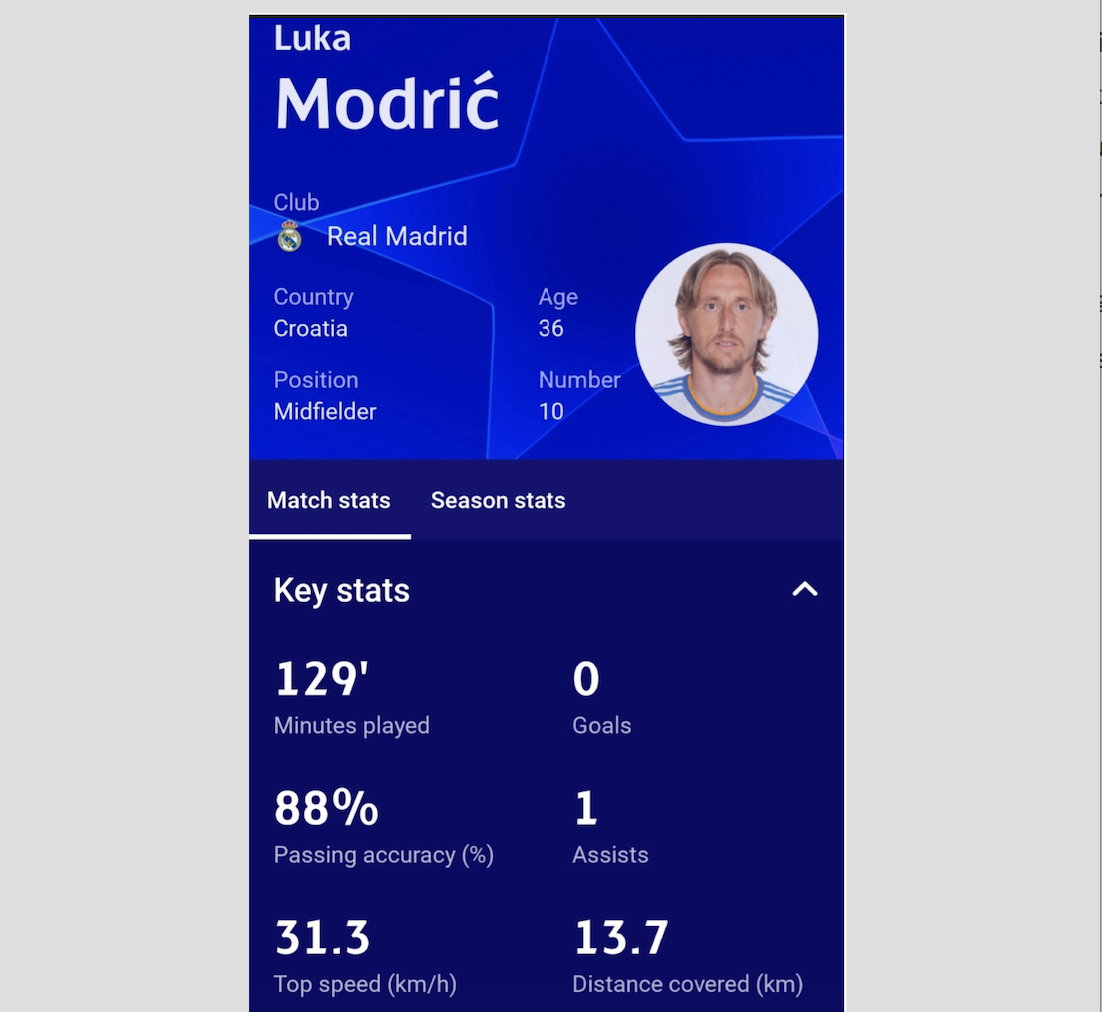 진짜 경기장에서 모드리치만 엄청 보이긴했는데 13.7이라니..... ㄷㄷ