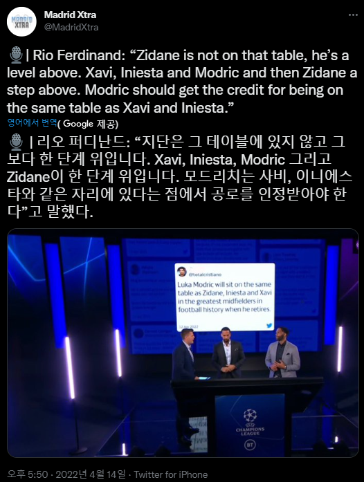 [퍼디난드가 평가한 '모드리치, 사비, 이니에스타 그리고 지단']