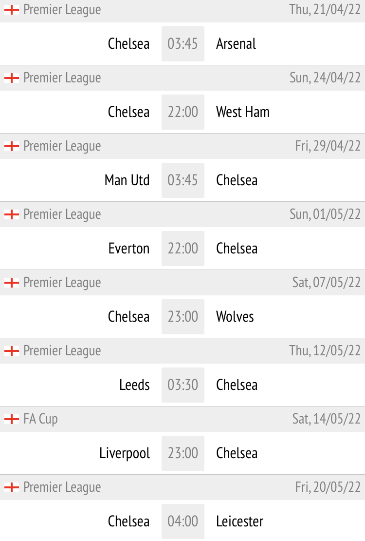 [한시즌 내내 죽음의 일정 보내는 첼시의 남은 경기]