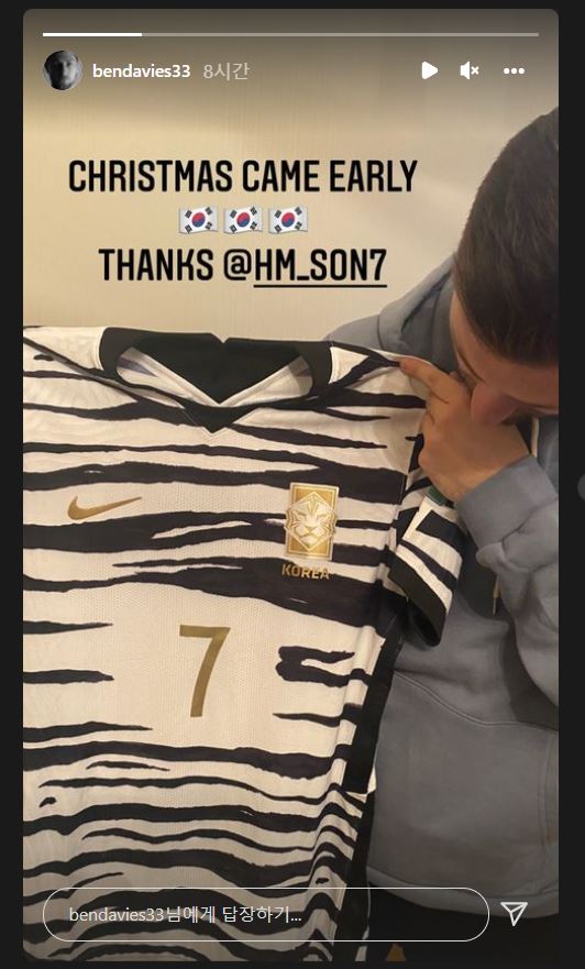 손흥민의 토트넘 동료 벤 데이비스, 크리스마스 선물로 국대 유니폼 받음ㄷㄷㄷㄷ