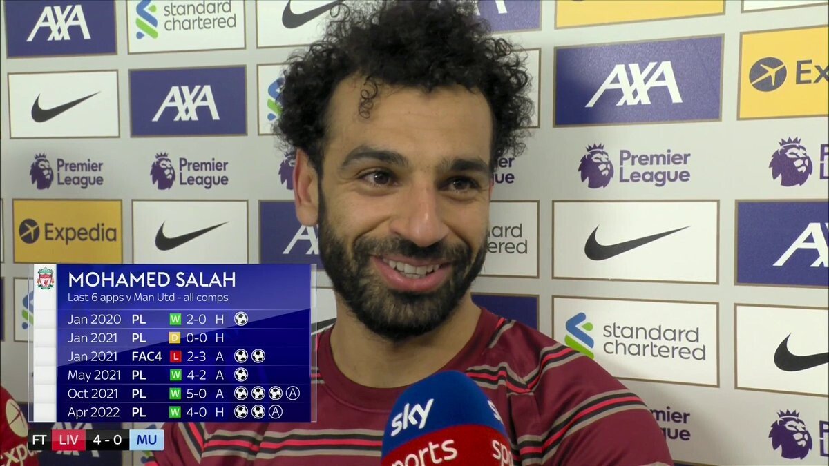 맨유전에서 멀티골을 넣은 살라는, 경기 후 인터뷰에서 티아고 알칸타라가 말하던 도중 몇번 끼어들기도 했으며, 인터뷰 도중 맨유의 경기력에 대해 혹평하기도 했다.