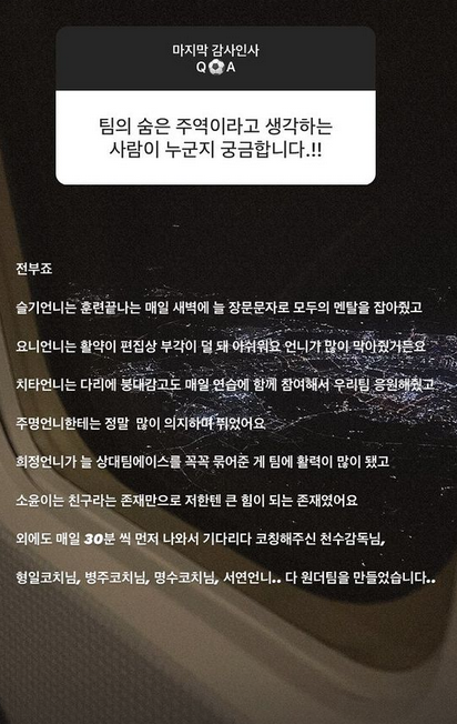 그리고 팀원 모두에게 감사인사를 하는 송소희.....인성ㅠ