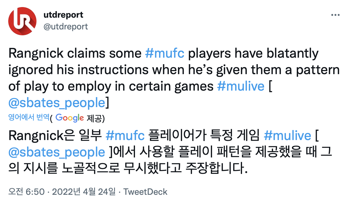 "몇몇 선수가 특정 게임에서 사용할 전술을 지시했을 때 노골적으로 무시했다"