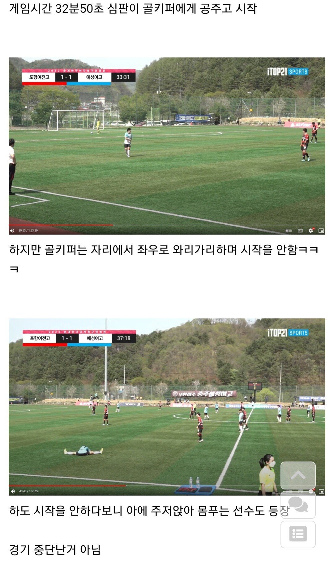 논란이 됐던 상황. 고교 여축 경기에서 나온 대략 10분간 서로 공수 없이 멈춤. 아래는 이 논란에 답변한 해당 감독의 인터뷰